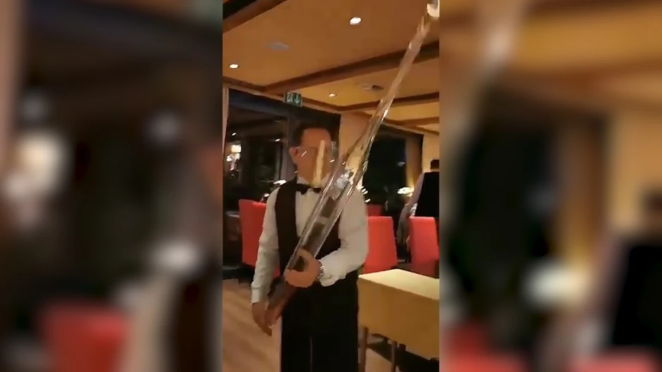 Sudeći prema reakcijama gostiju, svi su zadovoljni a najviše konobar koji svaki put mora da rukuje ovim neverovatnim predmetom.