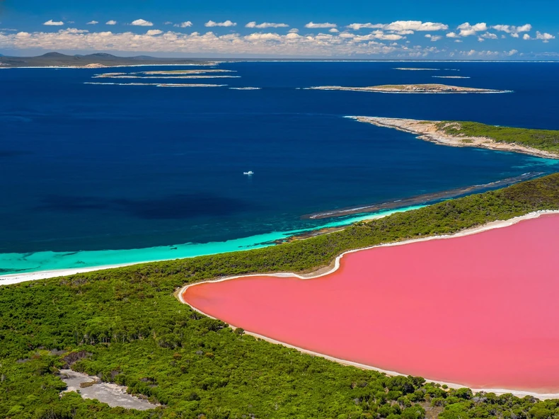 Jezero Hilijer u Australiji poznato je po svojoj konstantno jarko roze boji.