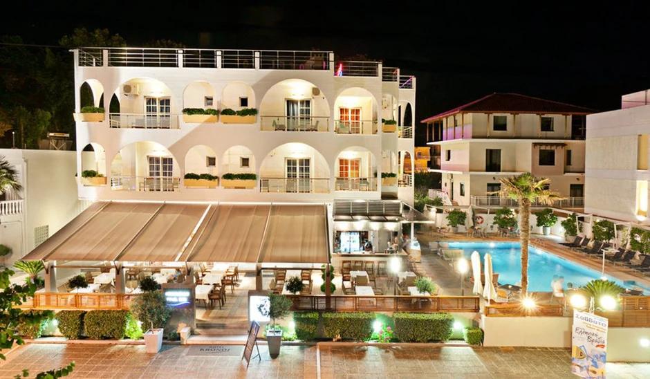 Grand Otel 4* je hotel sa najboljom lokacijom u Haniotiju: smešten je u centru, na samoj plaži, pored gradskog parka. Sastoji se od dve zgrade između kojih je parking. Raspolaže sopstvenom plažom i bazenom i nudi izuzetnu uslugu restorana, bara, snack-bara na plaži, wifi internet. Sobe su opremljene radiom, telefonom, frižiderom, klima-uređajem i sve imaju balkon sa pogledom na more ili dvorište. Uz popust od 53%, 7 noći za dvoje odraslih i dvoje dece do 12 i 6 godina možete platiti 399€, a tu je i dodatnih 5% popusta za uplate u celini!