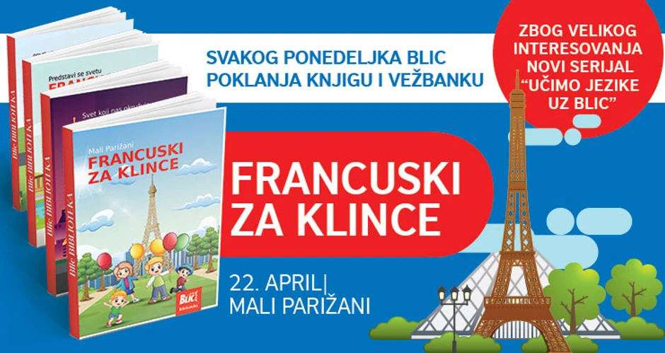 U ponedeljak, 22. aprila, uz „Blic“ na poklon poslednja knjiga iz edicije „Francuski za klince“ sa osnovnim lekcijama ovog jezika.