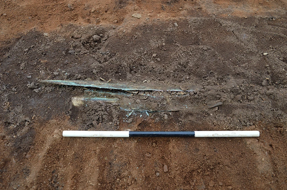 Mač je se nalazio u futroli od kože i drveta, verovatno najbolje očuvanoj iz kasnog bronzanog perioda ikada otkrivenoj u Velikoj Britaniji, saopštili su arheolozi. Pored vrha koplja, otkrivene su i kože, a oko bronzane futrole komadi tekstila, piše "The Weather".