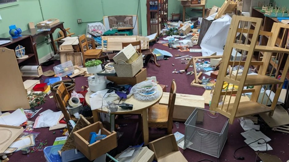 Nepoznati počinioci provalili su u skupštinsku salu, kapelu i više učionica škole Holy Innocents, gde su prema rečima uprave škole polomili statue, oštetili slike verskih figura i srušili fotografiju pape. U dvorištu su pronađeni tragovi vandalizma i napušteni predmeti, koji će istražiteljima poslužiti za DNK analizu.