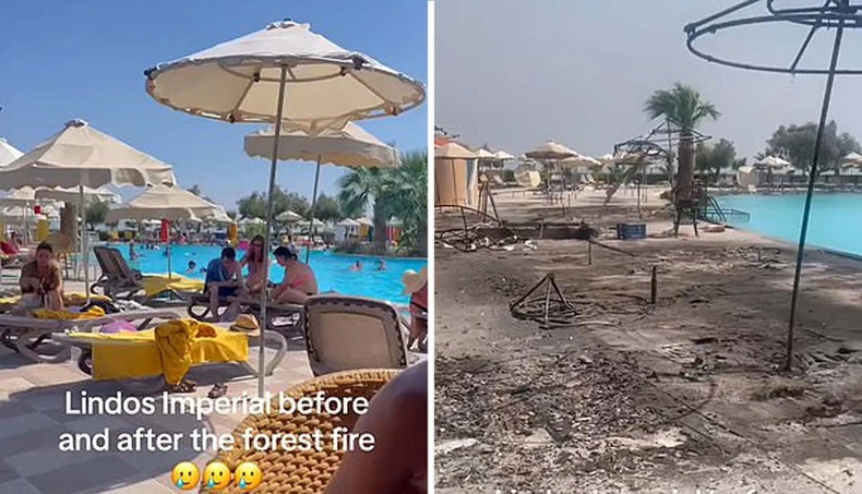 Lindos Imperial Resort and Spa, u selu Kiotari, bio je jedan od hotela koji su evakuisani kada su šumski požari zahvatili grčko ostrvo. Video koji je podeljen na TikTok-u pokazao je spaljeni deo odmarališta pored bazena. Na snimku se prvo prikazuje porodice kako se opuštaju na ležaljkama dok se deca veselo igraju u bazenu.