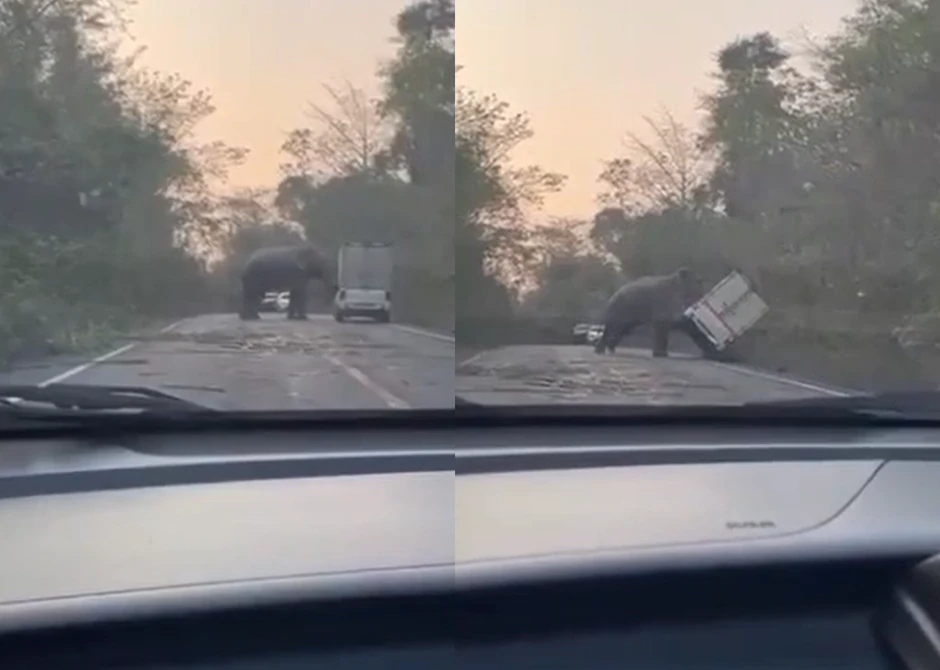 Naime, na sincima i fotografijama ljudi koji su bili u prilici da uživo vide ovu neverovatnu scenu, vidi se kako je ljutiti slon, nakon što mu kombi nije dao prvenstvo prolaza, prišao polako i surlom ga odgurnuo u grmlje pored puta, nakon čega se kombi prevrnuo.