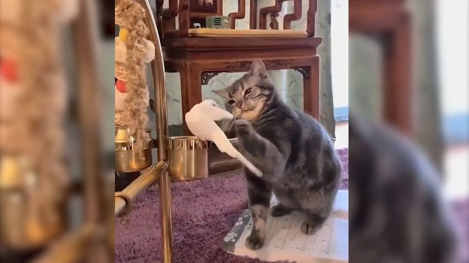 Šta se desi kada se sretnu mačka i ptica, ali u situaciji kada su oboje kućni ljubimci? Prevlada li kućno vaspitanje ili urođeni instikt?