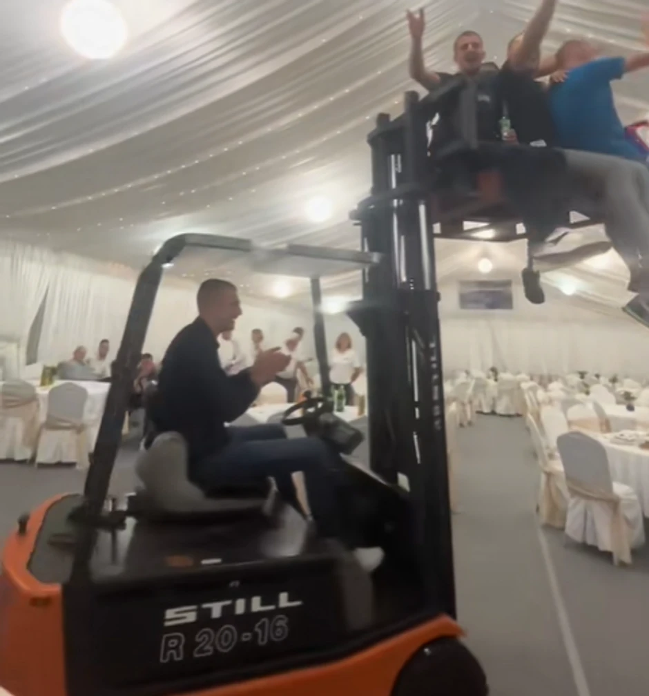Gosti se popeli na podignutu paletu na viljuškaru pa potezom nasmejali mnoge.