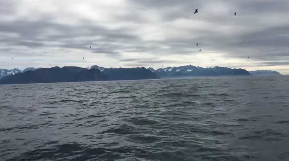 Čovek po imenu Bred Rič bio je na brodu na obali Aljaske kada je čuo nešto pored broda. Pretpostavio je šta bi taj zvuk mogao biti i odlučio je da izvadi svoju kameru i da snimi ceo događaj. Prvo je snimao ogromni broj galebova koji lete iznad mora, piše "Virealno".