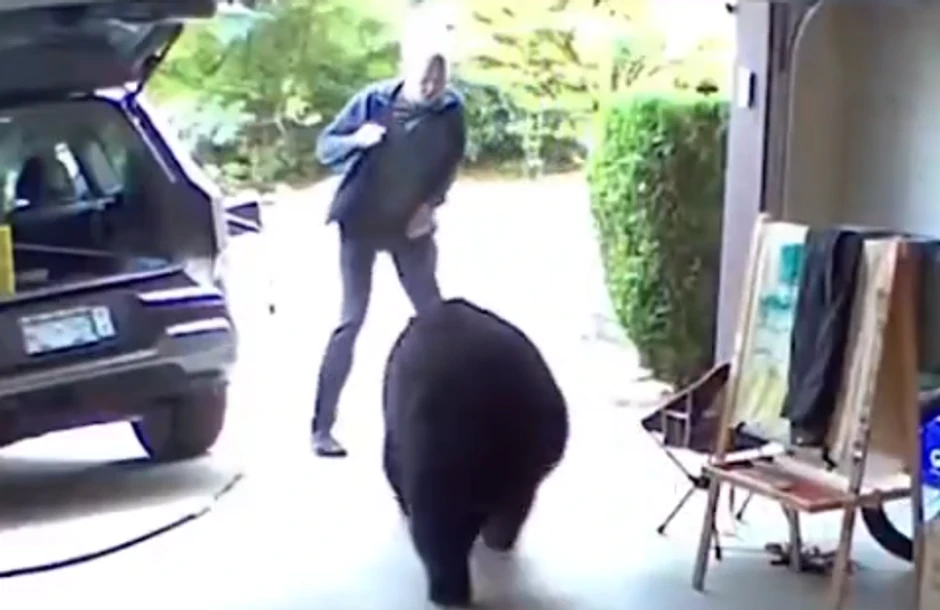 Na snimku sa sigurnosnih kamera, koji je Aleks kasnije podelio na mrežama, vidi se kako izlazi iz kuće i kreće prema garaži. U trenutku kada je prolazio ispred otvorenih vrata, crni medved je iznenada krenu pravo ka njemu! Instinktivno, Aleks se brzo sklonio u stranu, izbegavajući potencijalno opasan kontakt sa životinjom.