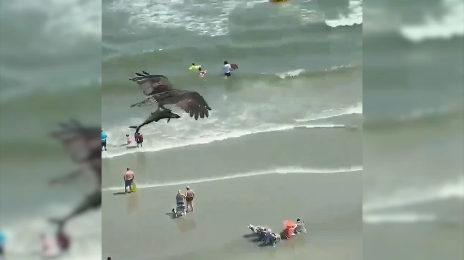Posetioci plaže u Južnoj Karolini prisustvovali su skoro neverovatnom događaju — videli su orla koji je iz okeana „zgrabio“ ajkulu, leteći sa njom kao od šale.