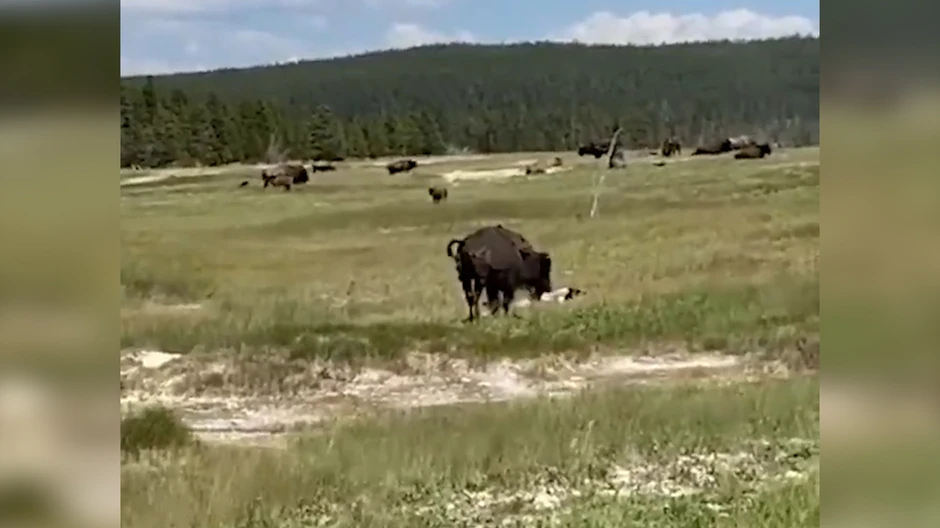 Kako se na snimku vidi, par je šetao kada su dva bizona iz čista mira pojurili ka njima. Bežeći u panici, žena se saplela i pala u momentu kada više nije bilo šanse da umakne pobesneloj životinji.