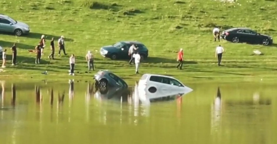Strašan, nestvaran i pomalo čudan prizor automobila koji tonu zabeležen je juče na Sjeničkom jezeru, na sreću, nastradalih nije bilo.