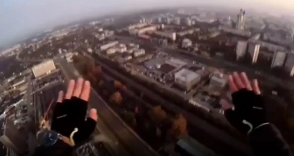 Snimak koji se prvobitno pojavio na Instagram stranici "Moj Beograd" prikazuje kako mladić stoji na vrhu visoke zgrade, koja se nalazi u neposrednoj blizini jednog od bulevara na Novom Beogradu.