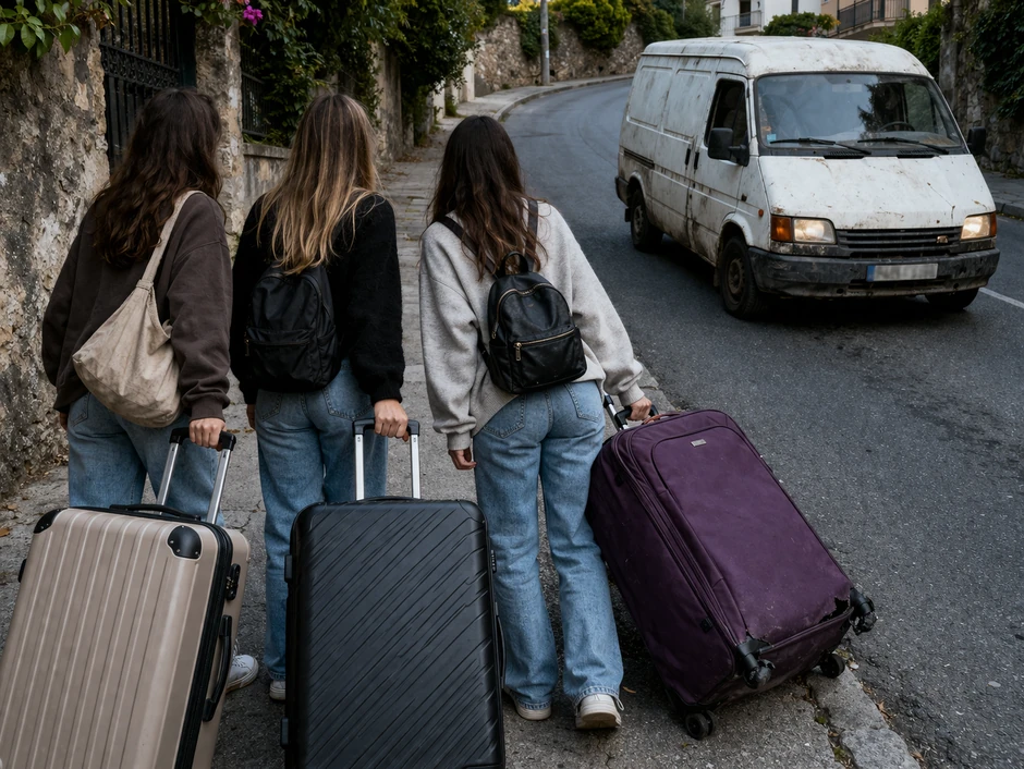 "Bio je poslednji dan. Izašle smo se iz smeštaja i krenule ka autobusu. Trebalo nam je oko deset minuta pešaka, uzbrdo. Dok smo prolazile tim strmim uličicama, naišle smo na čoveka naslonjenog na kapiju. Stariji muškarac, verovatno pedesetih godina, izgledao je sumnjivo i nije delovao poverljivo. Pitao nas je da li nam treba pomoć sa koferima, ali smo rekle da ne treba i nastavile dalje. On je tada otrčao dvadesetak metara napred do svog kombija, starog, belog i izgrebanog, baš kao iz filmova", rekla je pa dodala: