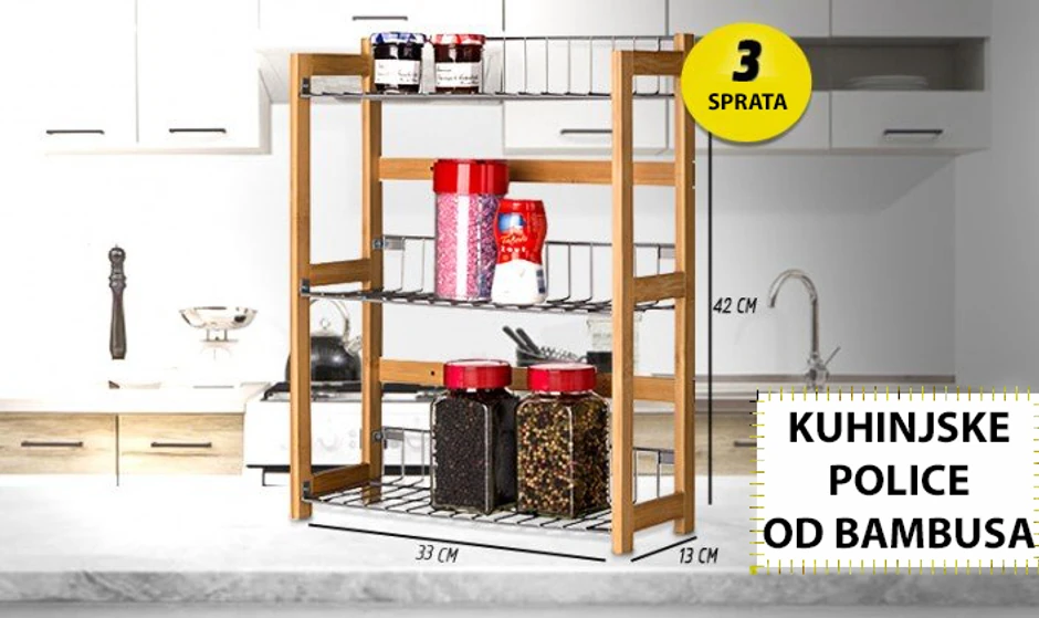 Kuhinjske police od bambusa i nerđajućeg čelika je dimenzija 33x42x13cm i vrlo jednostavno se montira a trenutno je možete kupiti po promotivnoj ceni od samo 1.699 dinara na gruppi.rs.