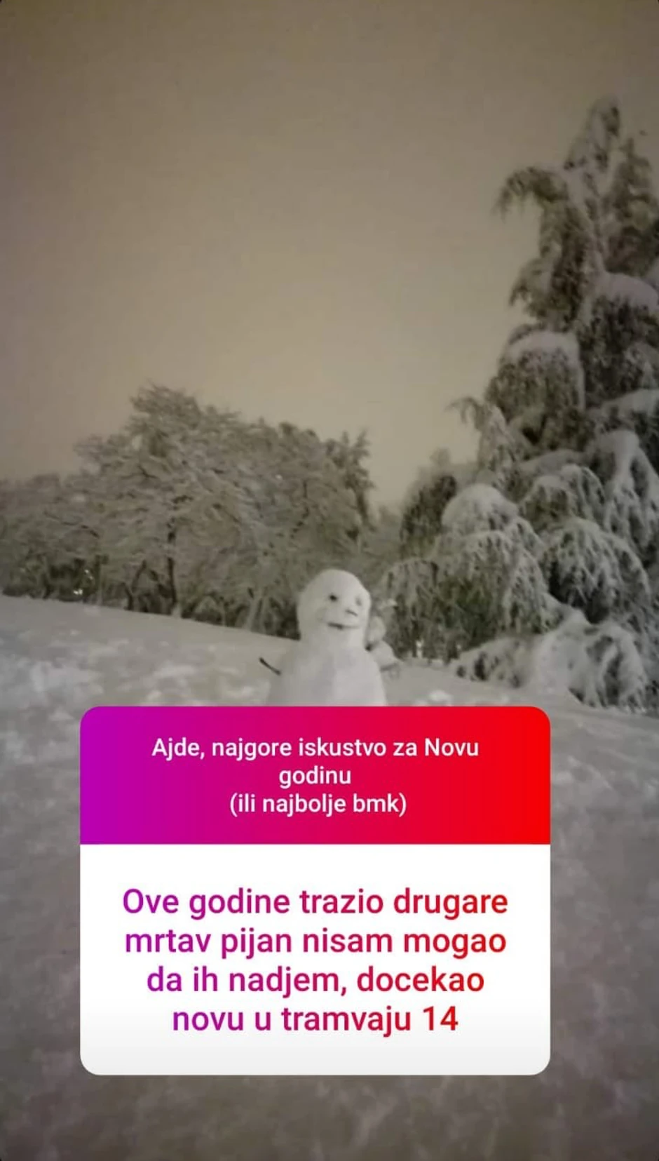 "Ove godine tražio drugare mrtav pijan, nisam mogao da ih nađem, dočekao novu u tramvaju 14", glasilo je iskustvo ovog mladića iz Beograda.