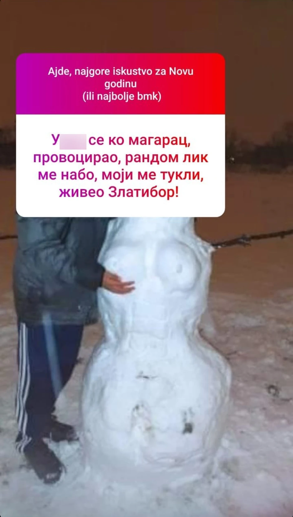"U**o se ko magarac, provocirao, random lik me nabo, moji me tukli, živeo Zlatibor!", napisao je on.