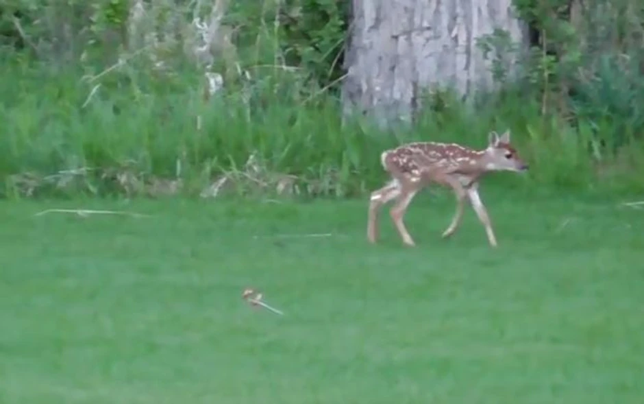 Bojeći se za život svog zdravog laneta, kao i za svoj, zbog okolnih predatora, srna je odlučila da ostavi svoje nesposobno lane iza sebe.