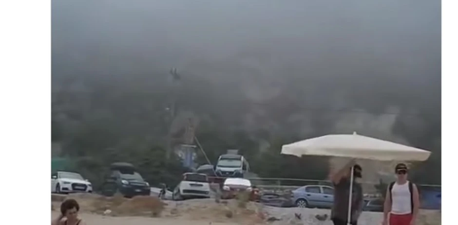Pola plaže se brzinski pokupilo i otišlo sa plaže, a druga polovina je samo nastavila da uživa, kada je juče u mestu Katizimi na Lefkadi nebo samo posivelo a nešto poput magle se spustilo među kupače.