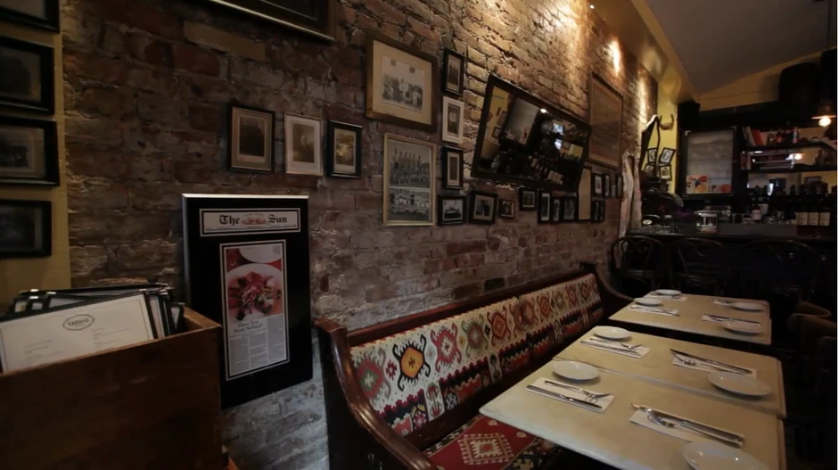 - Pite od spanaća i sira koje su visoke kao parče rođendanske torte; pečene crvene paprike sa čilijem boje šartreza; domaće kobasice na žaru; čudne boce furminta i veliko bianco; dok u uglu sviraju balkanske melodije. Moramo biti u Kafani, ‘sui generis’ (jedinstvenoj) srpskoj žurci na Aveniji C.“