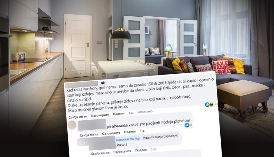 -Kad radiš kao konj godinama, samo da zaradiš 150 ili 200 hiljada da bi kupio i opremio stan koji izdaješ, maaalo je previše da ulaziš u bilo koji rizik. Deca, pas, mačka i ostalo su rizici. Dlake, grebanje parketa, prljanje zidova na bilo koji način... nepotrebno. Malo mućneš glavom i sve je jasno - napisao je čovek.
