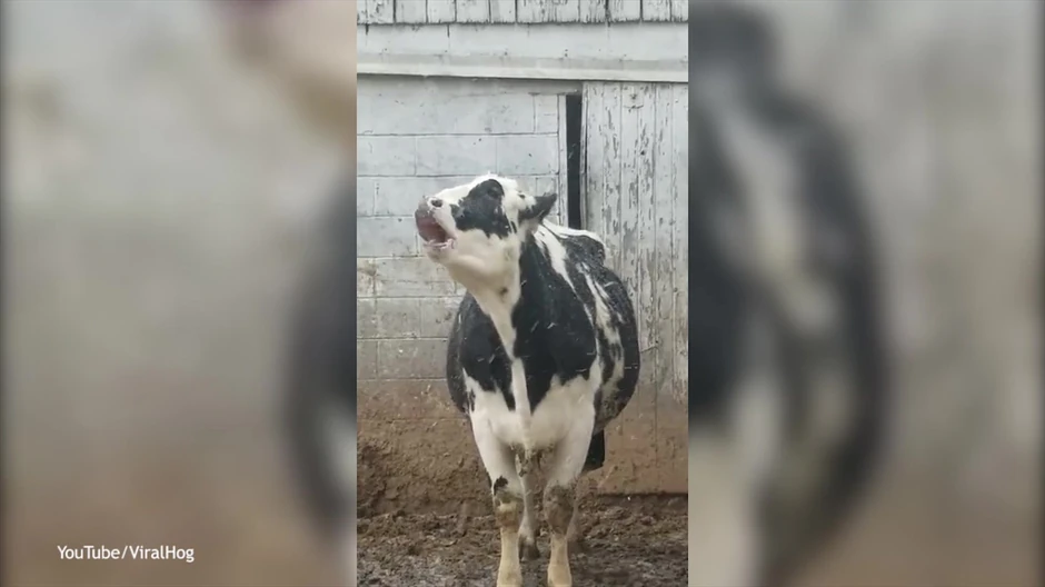 Na njemu se vidi krava koja jezikom pokušava da uhvati što više pahulja snega, a snimak je nasmejao hiljade ljubitelja životinja na društvenim mrežama.
