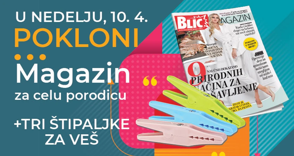 "Blic" u nedelju, 10. aprila, svim čitaocima daruje štipaljke za veš i novi broj Magazina za celu porodicu.