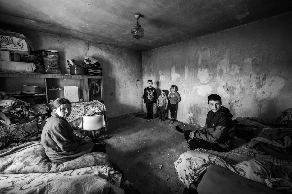 Rasparenih i probušenih čarapica, bosonogi, gledajući na nas kao da smo sa druge planete, dočekali su nas Milan (16), Tijana (14), Ivan (9), Luna (6), Melani (4) i Tamara (2). I jesmo, stigli smo sa planete udobnog i bezbrižnog života, dok je njihov dečiji kutak nalik na pustu površinu Meseca – hladan, taman i pun kratera!