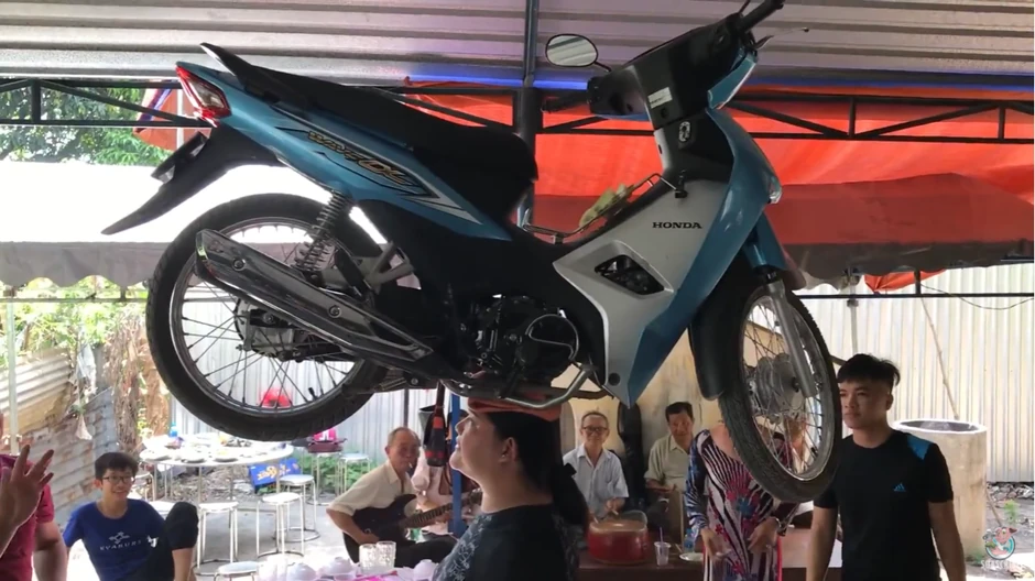 Na internetu se pojavio snimak Vijetnamke iz Ho Ši Mina kako nosi motocikl na glavi kao da je šešir. Njega su sa teškom mukom podigla šestorica muškaraca, a onda ga je ona preuzela i držala na svojoj glavi.
