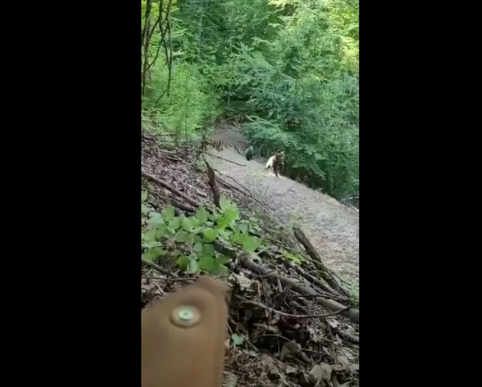 Na video snimku koji kruži mrežama vidi se najpre prazan šumski put, a zatim i mečka sa mečetom kako izviruje iza jedne krivine. Autora snimka, koji se krio iznad puta, životinja je odmah primetila i zaustavila se na par desetina metara od njega, međutim, scena koja je naježila sve koji su je pogledali tek je usledila.