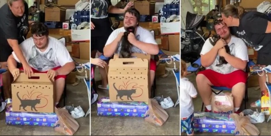 Dao joj je ime Vitani, po liku iz crtanog filma, a njegova reakcija kada je otvorio kutiju i video da se u njoj nalazi mačka, raznežila je mnoge.