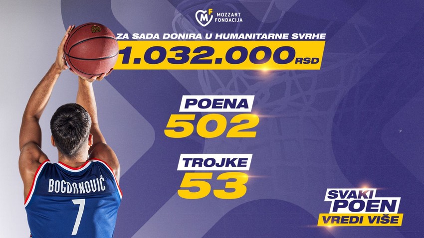 Fondacija Mozzart donira 1.000 dinara za svaki poen, a 10.000 za svaku trojku. Sredstva idu za razvoj školskog sporta, a oprema će stići i u škole koje su pohađali naši reprezentativci