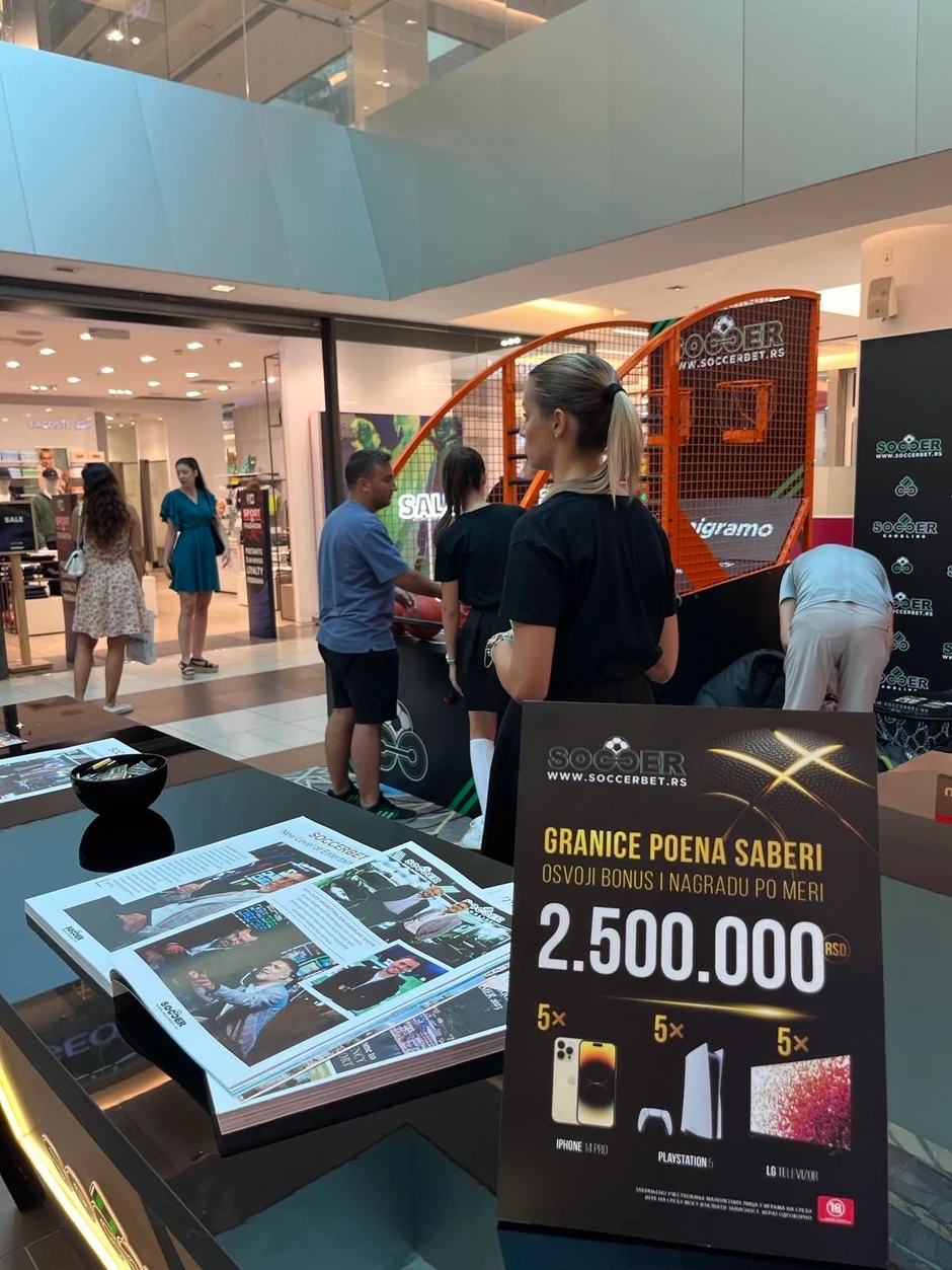 Obavezno svratite u Ušće SC, jer vas na jednoj od najatraktivnijih lokacija ovog centra, na Centralnom trgu, čekaju Soccerbet i njihov Fun Zone, koji su vam spremili odličan provod, “začinjen” posebnim iznenađenjima.