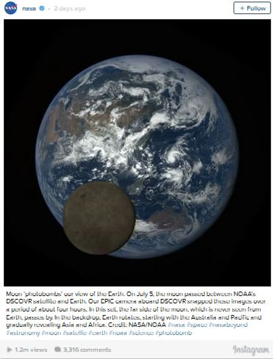 "Naša kamera EPIC je snimila ove fotografije tokom perioda od otprilike četiri sata. U ovom setu fotografija može se videti strana Meseca koja se nikada ne vidi sa Zemlje" objavila je NASA na svojm Instagram profilu.