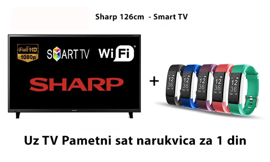 Možete se opredeliti za Sharp Full HD Smart TV od 50 inča uz koji dobijate i FIT PRO pametni sat i narukvicu za svega 1 dinar! Smart TV omogućava prikaz sadržaja direktno na vašem televizoru, tako da ćete uživati u omiljenim programima i aplikacijama poput Netflix-a i Youtube- a. Ovaj TV dijagonale 126cm košta 43.000 dinara klikom na sajt gruppi.rs.