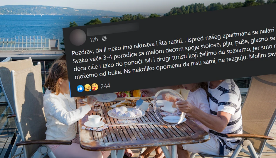 Ispred našeg apartmana se nalazi zajednički prostor. Svako veče tri četiri porodice sa malom decom spoje stolove, piju, puše, glasno se smeju i razgovaraju. Deca ciče i tako do ponoći. Mi i drugi turisti koji želimo da spavamo, jer smo na odmoru, ne možemo od buke. Na nekoliko opomena da nisu sami, ne reaguju. Molim savet" stoji u Katarininoj objavi.