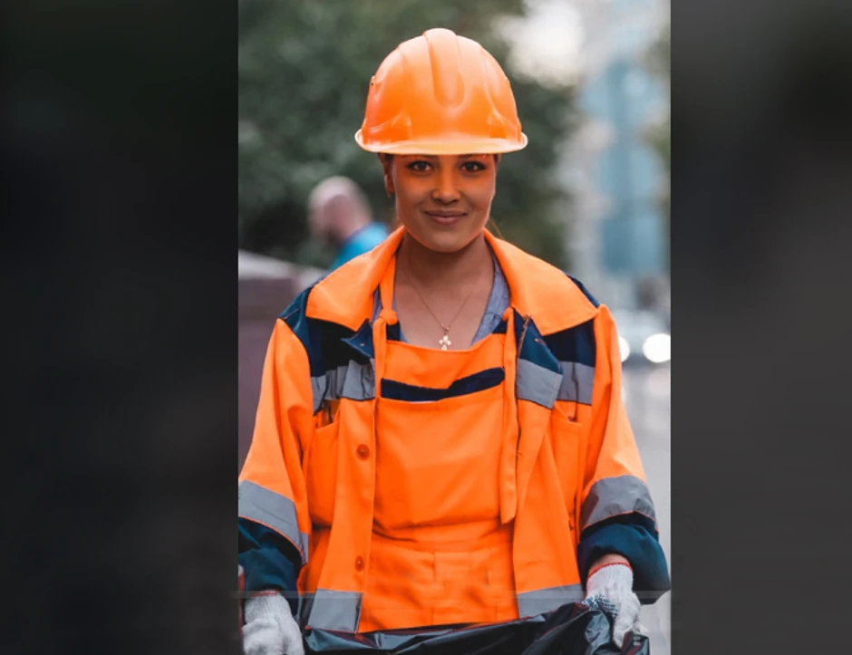 Neimenovana žena je prvo fotografisana sa šlemom, koja se nalazi u okviru njene radne uniforme, a kada je primetila da je fotografišu, skinula je kacigu i pokazala neverovatnu prirodnu lepotu.