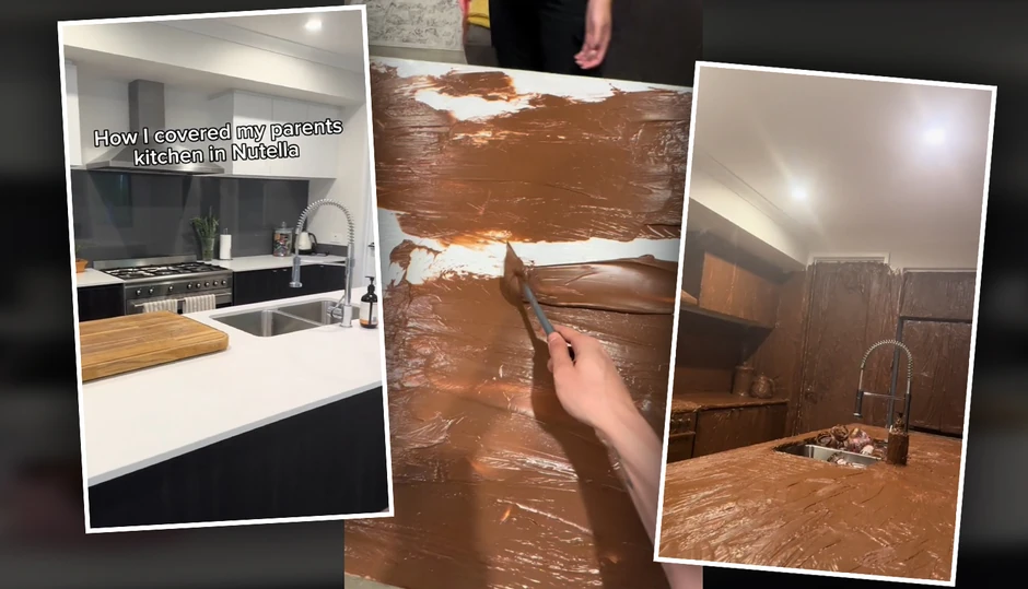Tiktoker koji se na ovoj društvenoj mreži potpisuje kao "kaihspeakup" odlučio se, rekli bismo, na jednu bizarnu ideju - da kuhinju svojih roditelja u potpunosti prekrije čokoladnim kremom. Ovaj video brzo postao je viralan na društvenim mrežama, sa oko šest miliona pregleda.
