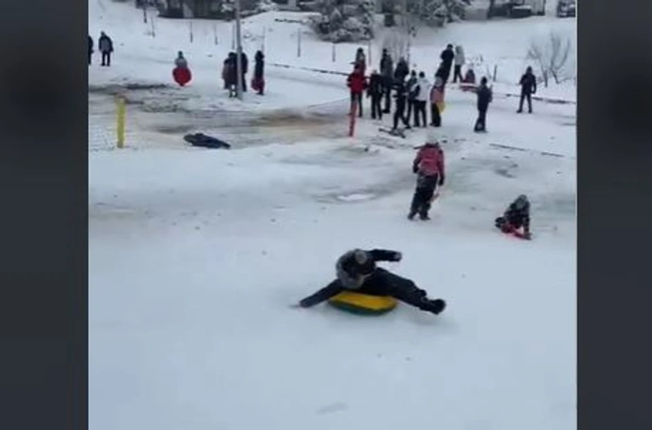 Zimske čarolije u vidu sankanja, sudeći po snimcima na društvenim mrežama, nisu rezervisane samo za najmlađe, već i oni stariji vole da se spuste kliskom niz padinu.
