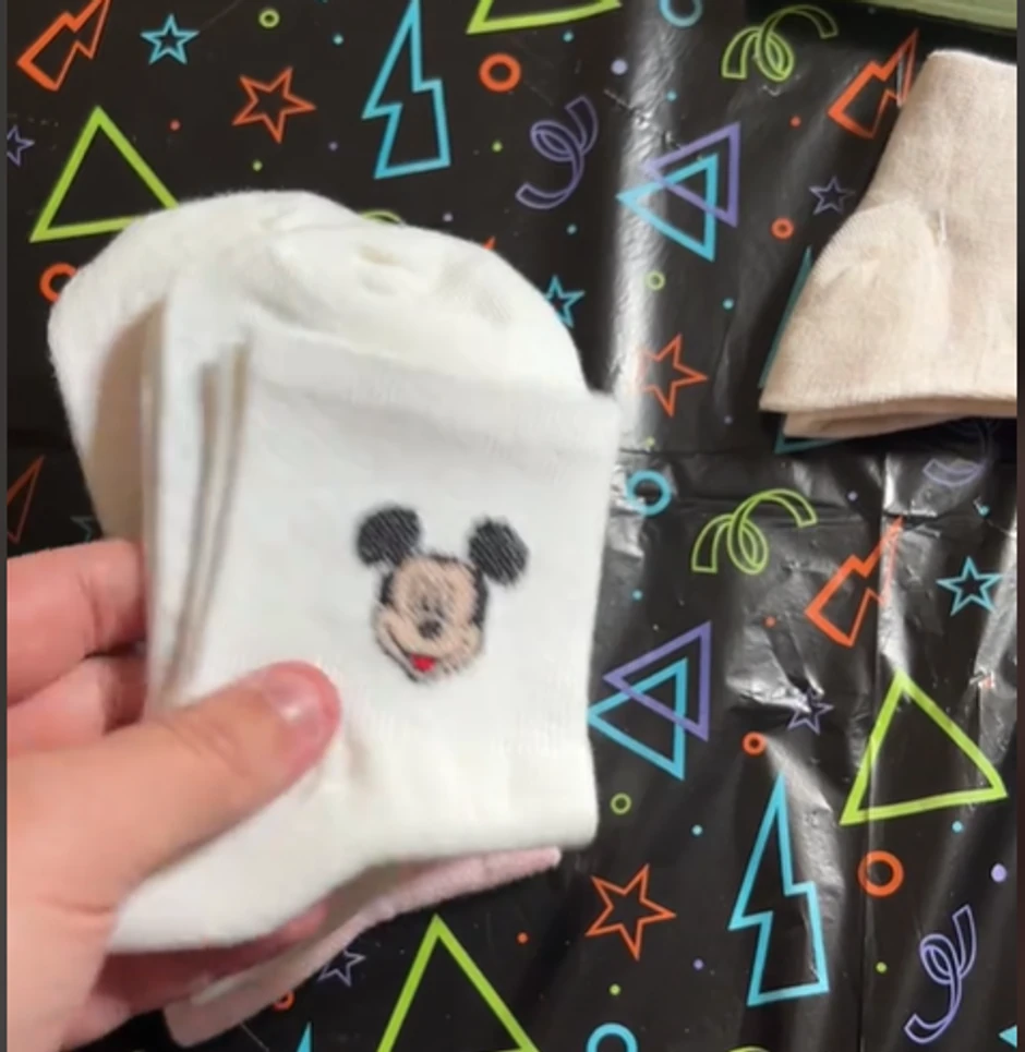 Na snimku suprug objašnjava da su naručili sa Temua čarape sa Diznijevom tematikom za putovanje, ali su dobili proizvode koji ne liče na one sa fotografije. Čarape su imale loše izvezene verzije likova sa pogrešnim imenima.