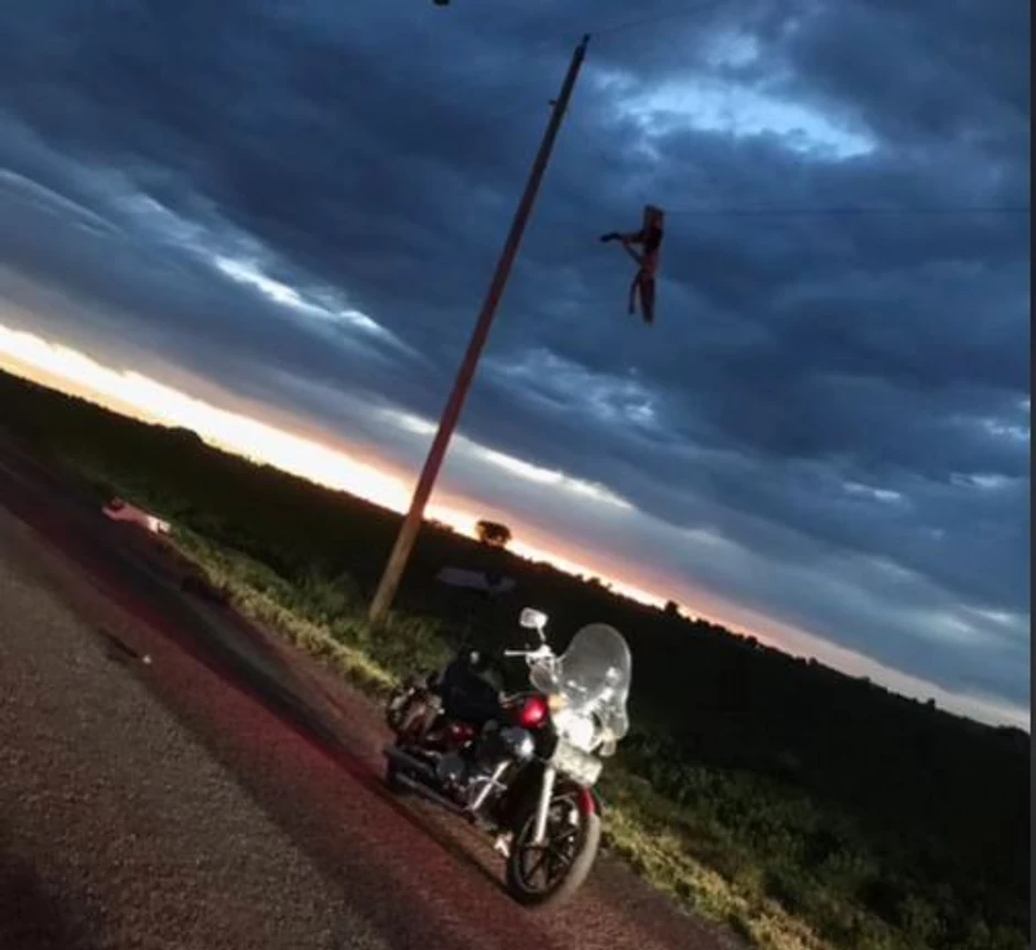 Visila na 10 metara od zemlje zakačena za žice dalekovoda