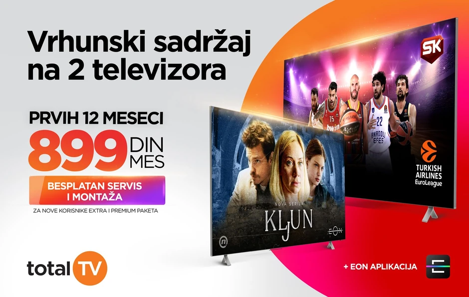 Za više informacija posetite totaltv.tv ili pozovite Kontakt centar na 19955.