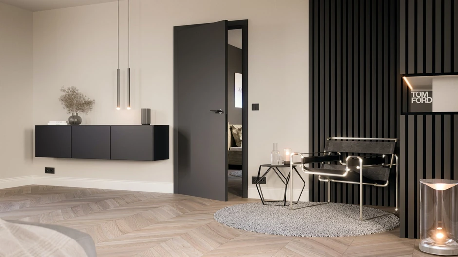 Crna sobna vrata se mogu kombinovati na različite načine, kako bi se stvorio širok izbor stilova. Bilo da privuče pažnju, kao kontrast belim i toplim tonovima drveta, ili kao harmoničan dodatak modernom enterijeru u industrijskom stilu.
