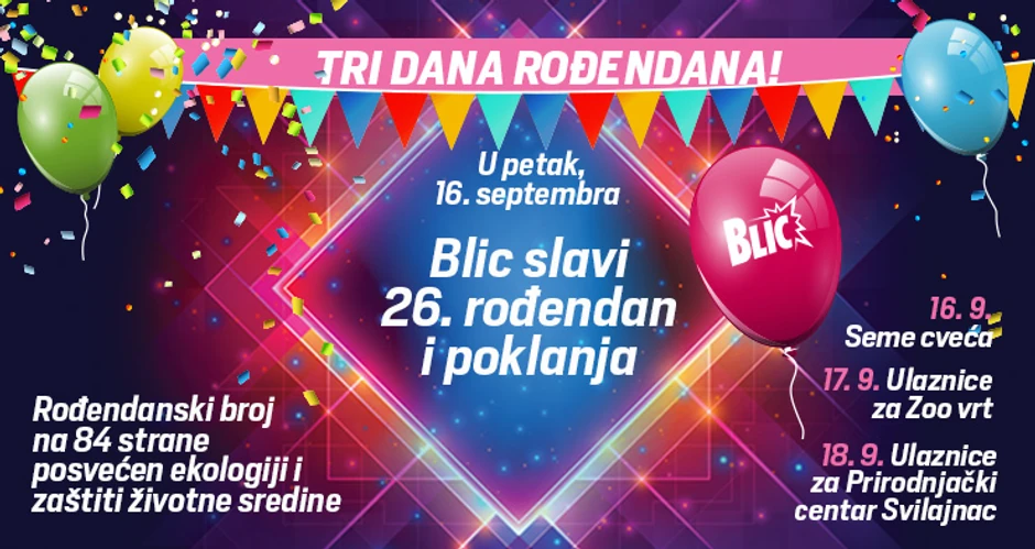 Ne propustite u petak, 16. septembra, rođendansko izdanje "Blica", najraznovrsniji sadržaj na povećanom broju strana, proslavite rođendan sa nama, a potražite i poklone koji vas čekaju od petka do nedelje!