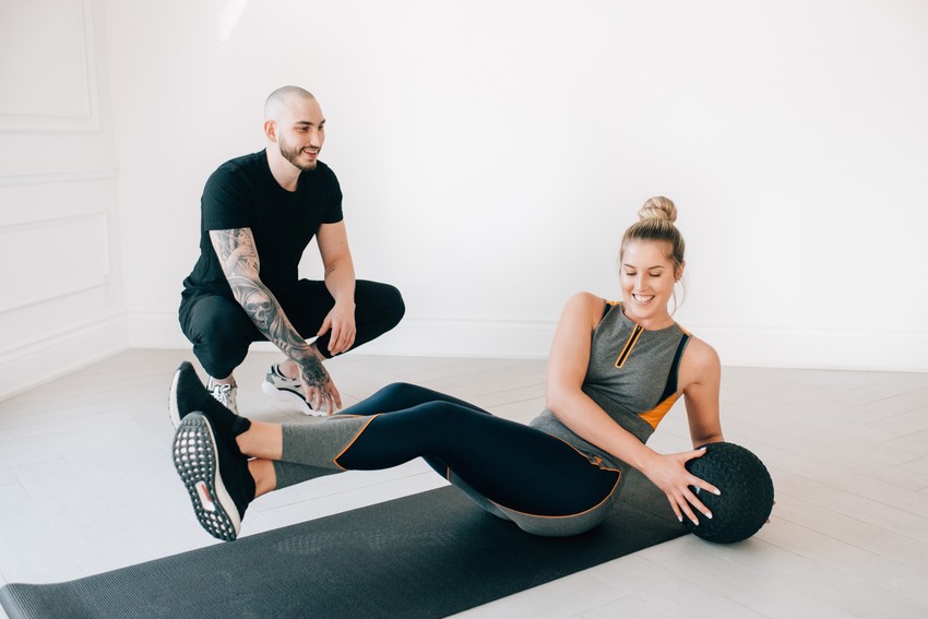 Sedeći na podu s loptom, tegićem ili nekim drugim teretom u rukama, rotirajte telo najpre u jednu, a potom drugu stranu. Na početku vežbajte s stopalima na podu, a kad steknete kondiciju, vežbe radite sa nogama podignutim u vazduh.