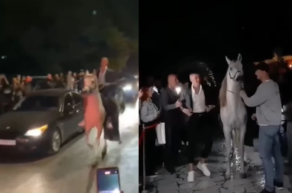 Kako se može videti na video snimku na instagram kanalu "017_dn", mladić u crnom odelu došao je na belom konju. I dok su njegovi drugari izlazili iz autobomila u pratnji svojih drugarica, mladić je ponosno jahao konja, nakon čega je sišao sa njega i dobio aplauz.