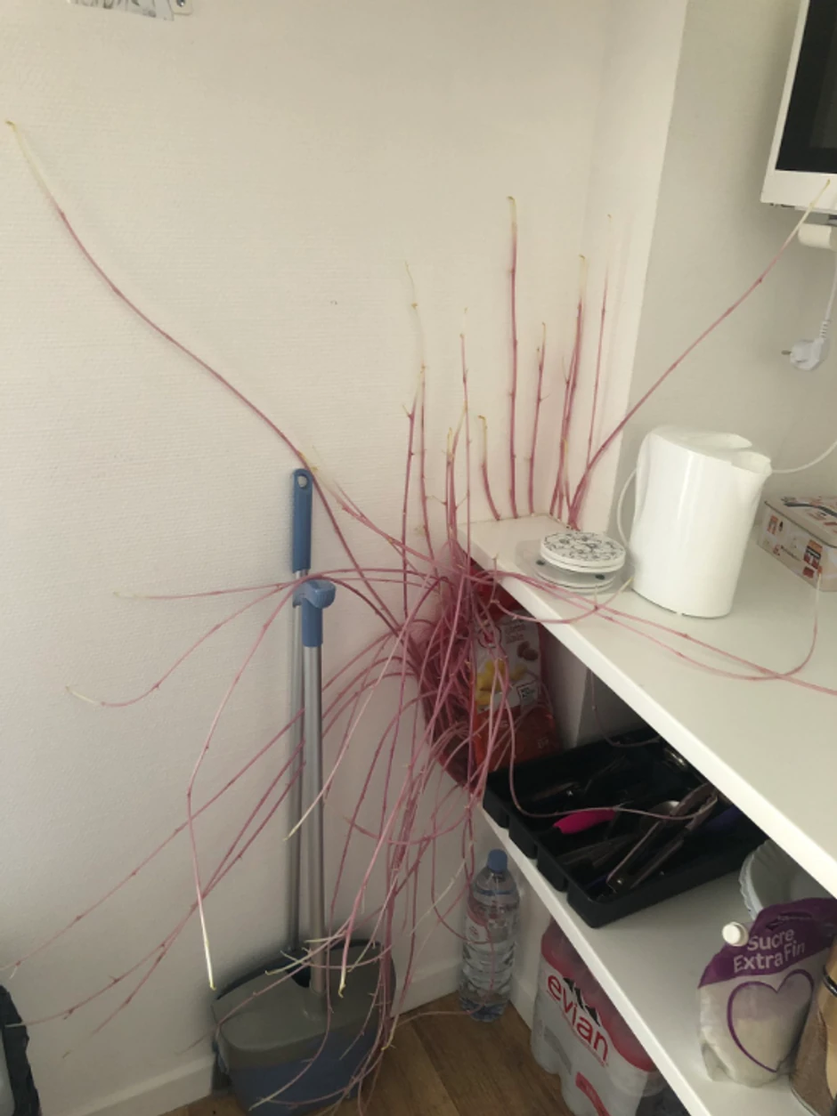 Nakon što je otvorila vrata u jednom čošku kuhinje videla je krompir koji je za ta tri meseca proklijao, toliko da su klice krčile sebi put čak i između zida i kuhinjske površine.