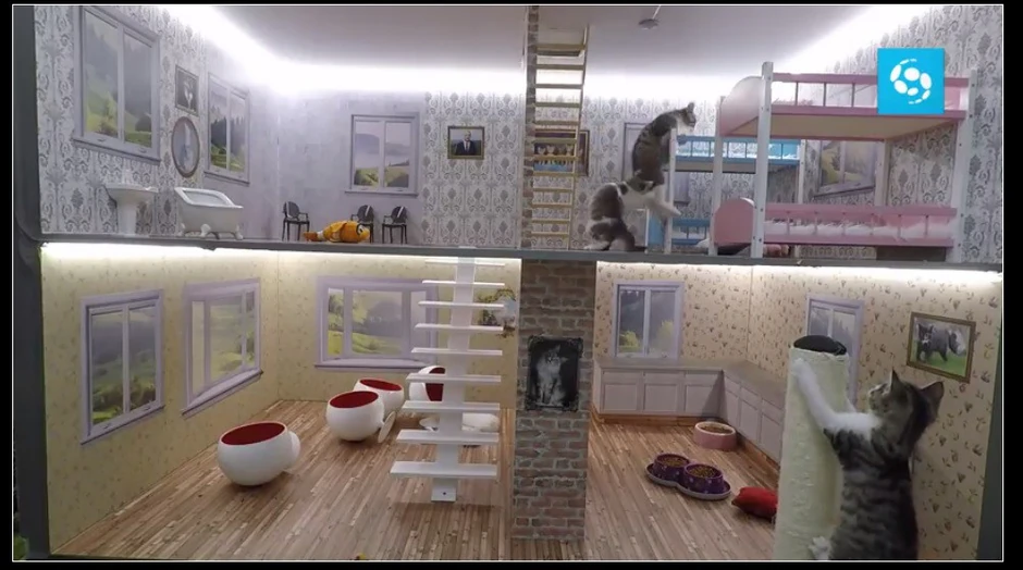 Gudni, Ronja, Brit i Stubur dovedeni su iz azila za mačke u TV-studio, koji je pretvoren u neku vrstu predimenzionirane kućice za lutke. Gledaoci mogu da ih posmatraju kako jurcaju naokolo, skaču sa sprata na sprat i pentraju se po grebalici, što će najverovatnije biti i vrhunac uzbuđenja, jer se najčešće izležavaju.