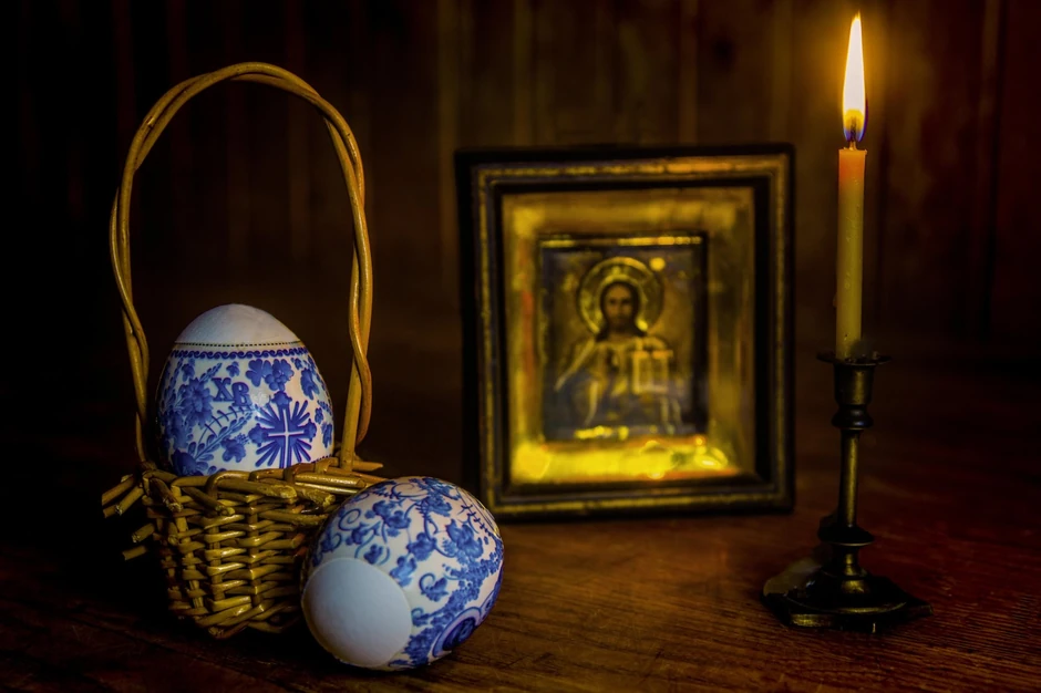 Posle zajedničke molitve, ponovo, jedni drugima čestitaju Vaskrs i sedaju za svečano postavljenu trpezu. Na stolu stoji ukrašena činija sa ofarbanim jajima. Domaćin prvi uzima jedno jaje, a za njim svi ukućani, i tada počinje tucanje.