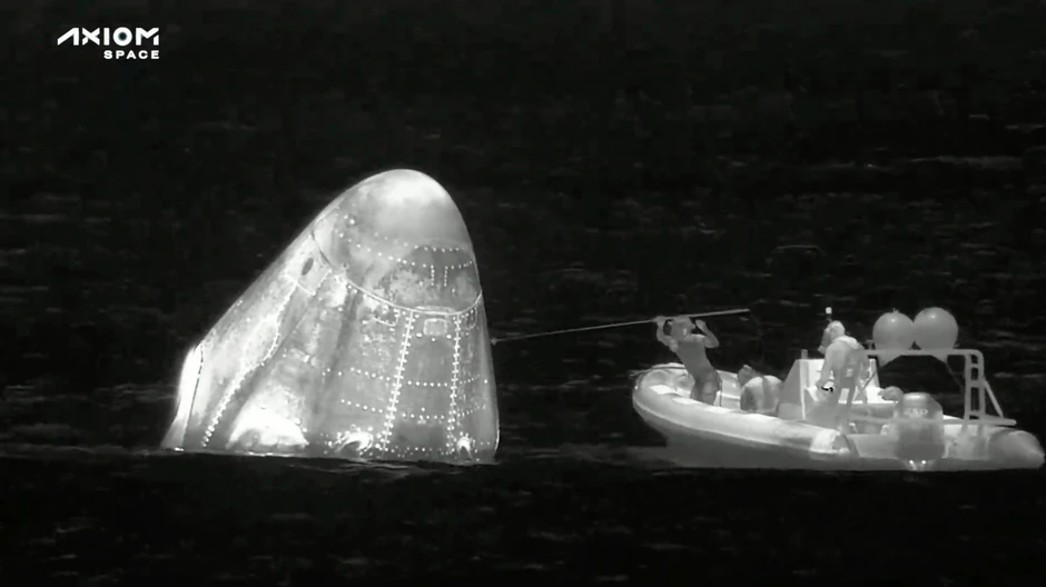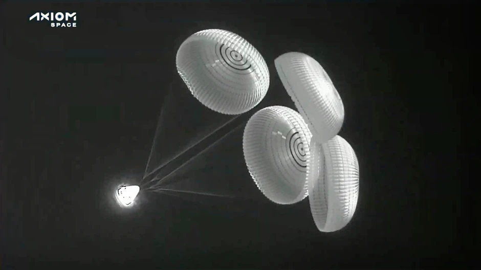 Kapsula Spejseksa koja je nosila tim od četiri svemirska turista, na čelu sa penzionisanim astronautom NASA koji je sada potpredsednik teksaške kompanije koja stoji iza misije, Aksiom Spejs, sletela je padobranom u more nakon 16-satnog spuštanja iz orbite, preneo je Rojters.