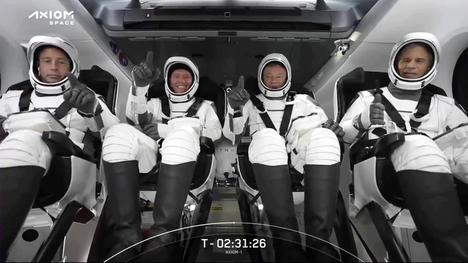 Na snimku kamere iz unutrašnjosti kapsule mogla su se videti četiri člana posade vezana za sedišta, obučena u belo-crne skafandere sa šlemovima.
